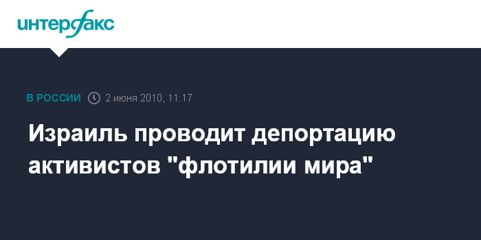 Москва. 2 июня. INTERFAX.RU - Израиль в среду начал депортацию первой группы иностранных активистов, находившихся на судах "флотилии мира", штурм которой предприняли в понедельник израильские морские пограничники, сообщает интернет-сайт израильской газеты "Гаарец" со ссылкой на данные МИД Израиля.