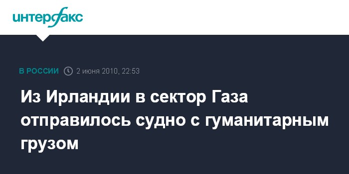 Из Ирландии в сектор Газа отправилось судно с гуманитарным грузом