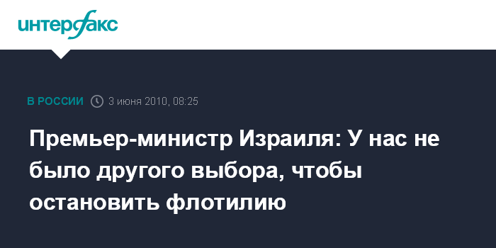 Москва. 3 июня. INTERFAX.RU - Премьер-министр Израиля Биньямин Нетаньяху заявил, что у Израиля "не было другого выбора", нежели применить силу, чтобы остановить гуманитарный конвой, пытавшийся прорвать блокаду сектора Газа, сообщила ВВС.