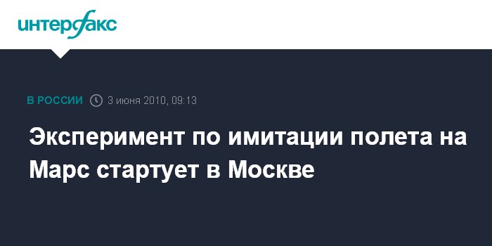 Москва. 3 июня. INTERFAX.RU - Шесть добровольцев, отобранных из нескольких тысяч желающих, на 520 суток изолируют от внешнего мира в имитаторе межпланетного космического корабля в рамках эксперимента по моделированию полета на Красную планету "Марс-500".