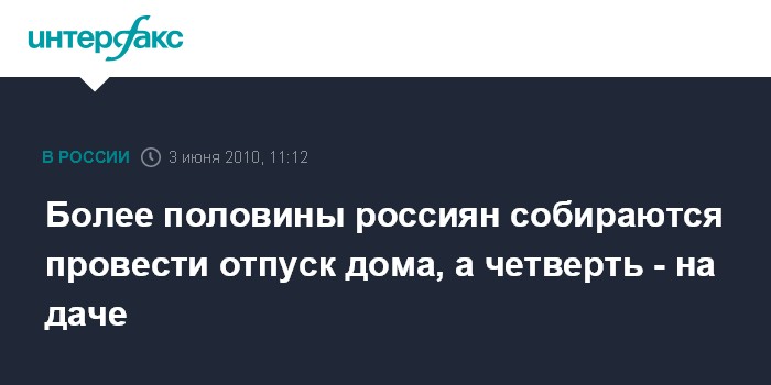 В целом 55% респондентов сообщили, что в летний отпуск будут заниматься домашними делами и никуда отдыхать не поедут, сообщили "Интерфаксу" в четверг социологи "Левада-Центра" по результатам всероссийского опроса, проведенного в преддверии летнего сезона.