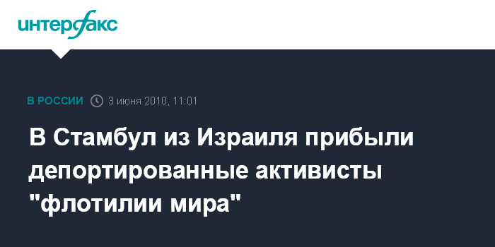 Москва. 3 июня. INTERFAX.RU - Самолет с 470 активистами так называемой "флотилии мира", депортированными из Израиля, приземлился в ночь на четверг в аэропорту Стамбула, сообщил турецкий телеканал НТВ.