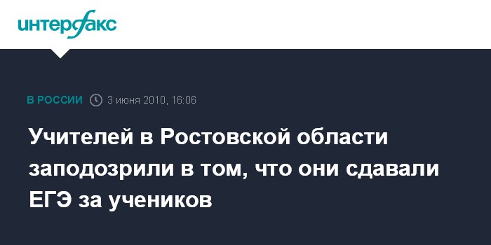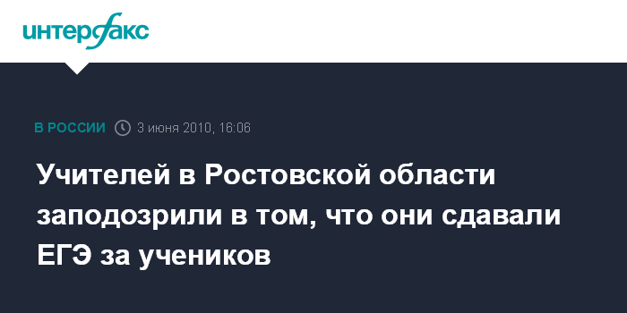 Москва. 3 июня. ИНТЕРФАКС - Правоохранительные органы начали проверку в связи с информацией о том, что учителя города Морозовска Ростовской области сдавали ЕГЭ по русскому языку за выпускников. Доследственную проверку проводят органы СКП совместно с региональной прокуратурой.