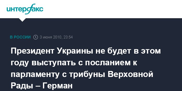 Президент Украины не будет в этом году выступать с посланием к парламенту с трибуны Верховной Рады – Герман