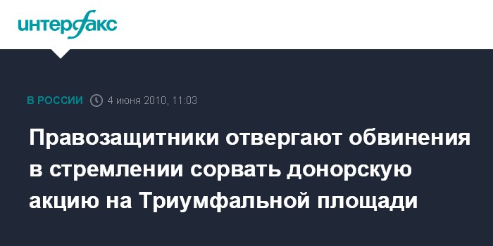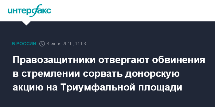 Правозащитники отвергают обвинения в стремлении сорвать донорскую акцию на Триумфальной площади