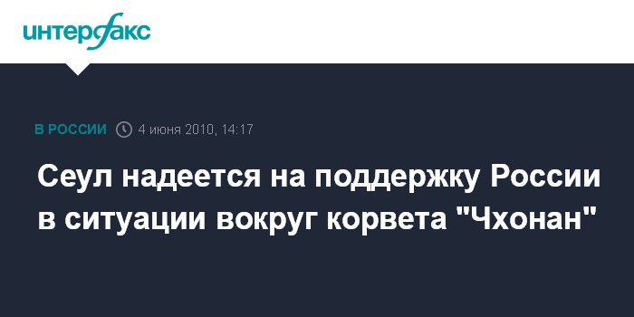 Сеул надеется на поддержку России в ситуации вокруг корвета "Чхонан"