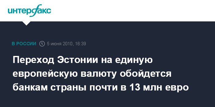 Переход Эстонии на единую европейскую валюту обойдется банкам страны почти в 13 млн евро