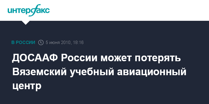 Москва. 5 июня. INTERFAX.RU - Вяземский учебный авиационный центр ДОСААФ России, который в субботу отмечает 50-летний юбилей, в ближайшей перспективе может прекратить свое существование, сообщил "Интерфаксу-АВН" начальник центра Казимир Тиханович. "Мы встречаем 50-летний юбилей нашего центра, к сожалению, с грустью. Скорее всего, показательные полеты некогда знаменитой пилотажной группы "Русь" на этих юбилейных торжествах станут последними", - сказал он. К.Тиханович пояснил, что непраздничное настроение сотрудников УВЦ связано с тем, что единственный в своем роде учебный авиационный центр ДОСААФ приходит в запустение.