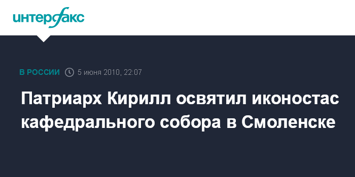 Смоленск. 5 июня. ИНТЕРФАКС - Патриарх Московский и всея Руси Кирилл в субботу вечером освятил обновленный 30-метровый иконостас Свято-Успенского кафедрального собора Смоленской епархии, которую он возглавлял в течение 25 лет до избрания на патриарший престол.