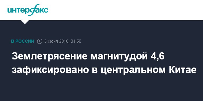 Пекин. 6 июня. ИНТЕРФАКС-КИТАЙ - Землетрясение магнитудой 4,6 произошло в субботу в центральной китайской провинции Шаньси, сообщила сейсмологическая служба КНР.