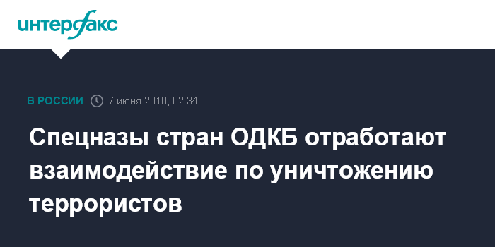 Москва. 7 июня. ИНТЕРФАКС-АВН - Первое учение спецподразделений органов внутренних дел (полиции) государств-членов ОДКБ, входящих в состав сил специального назначения Коллективных сил оперативного реагирования, пройдет с 7 по 11 июня.