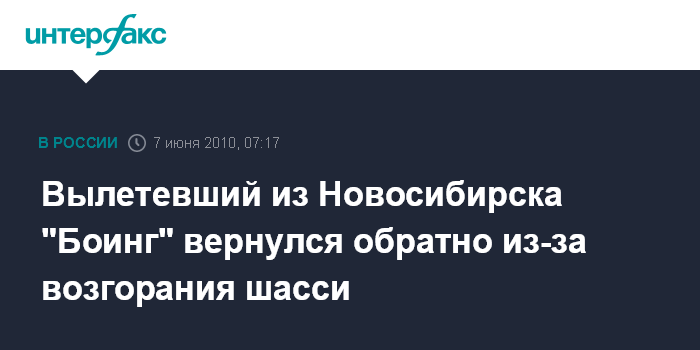 Как сообщила агентству "Интерфакс-Сибирь" старший помощник Западно-Сибирского транспортного прокурора Оксана Горбнова, в 7:23 по местному времени после взлета самолета из аэропорта Толмачево произошло возгорание шасси.