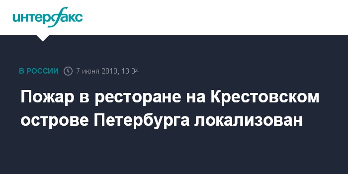 Пожар в ресторане на Крестовском острове Петербурга локализован