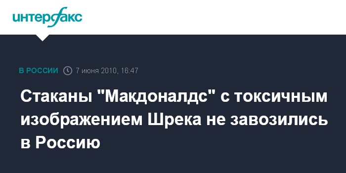 Стаканы "Макдоналдс" с токсичным изображением Шрека не завозились в Россию