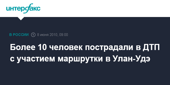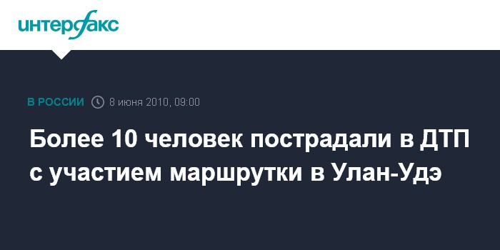 Москва. 8 июня. INTERFAX.RU - Маршрутное такси и грузовик КрАЗ столкнулись во вторник утром в Улан-Удэ, пострадали 13 человек. Двое из них находятся в тяжелом состоянии: 15-летний юноша с переломами госпитализирован в больницу, 70-летнему мужчине сейчас проводится операция.