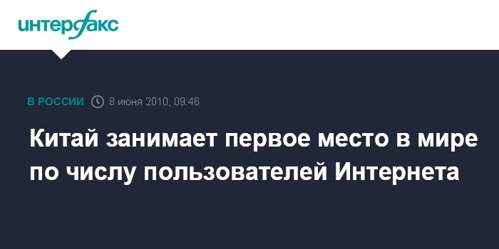 Москва. 8 июня. INTERFAX.RU - По количеству пользователей Интернета Китай занимает первое место в мире, утверждается в Белой книге "Ситуация в китайском Интернете", распространенной во вторник пресс-канцелярией Госсовета КНР.