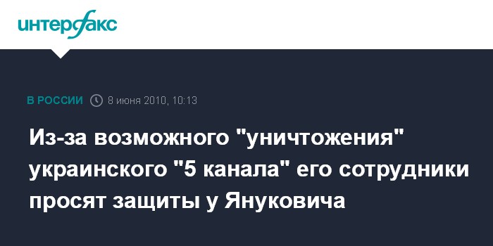 Москва. 8 июня. INTERFAX.RU - Редакция "5 канала" в открытом письме к президенту Украины Виктору Януковичу заявляет об угрозе для канала со стороны главы Службы безопасности Украины (СБУ) Валерия Хорошковского.