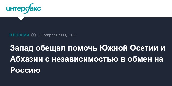 Запад обещал помочь Южной Осетии и Абхазии с независимостью в обмен на Россию