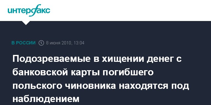 Подозреваемые в хищении денег с банковской карты погибшего польского чиновника находятся под наблюдением