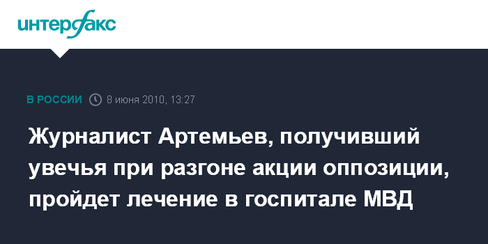 Журналист Артемьев, получивший увечья при разгоне акции оппозиции, пройдет лечение в госпитале МВД