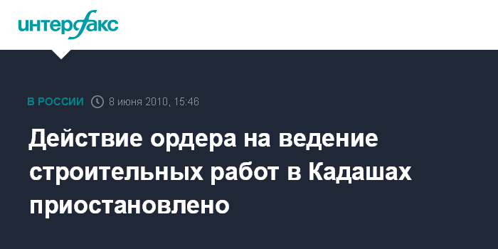 Москва. 8 июня. INTERFAX.RU - Действие ордера на строительные работы в Кадашах остановлено, заявил "Интерфаксу" во вторник генеральный директор компании - генподрядчика строительства в Кадашах ЗАО "Моспромстрой инжиниринг" Александр Фридман. По его словам, строительная организация получила письмо из Объединения административно-технической инспекции (ОАТИ) Москвы, где говорится, что в связи с депутатским обращением, отзывом разрешения на строительные работы Москомнаследия, а также с обращением Генпрокуратуры в ОАТИ принято решение о приостановке действия ордера на ведение строительных работ в Кадашах.