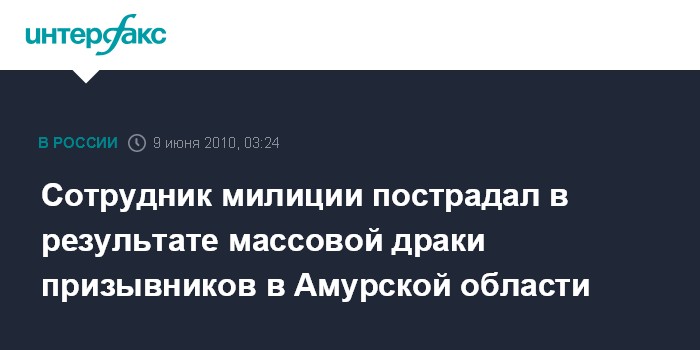 "Массовая драка произошла в минувший вторник утром. В нее оказались втянуты и призывники, и провожающие рядом, всего около 15 человек. Благодаря грамотным и оперативным действиям сотрудников органов внутренних дел инцидент был быстро исчерпан", - сообщил агентству "Интерфакс - Дальний Восток" представитель УВД по Амурской области.