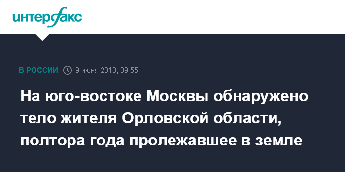 На юго-востоке Москвы обнаружено тело жителя Орловской области, полтора года пролежавшее в земле