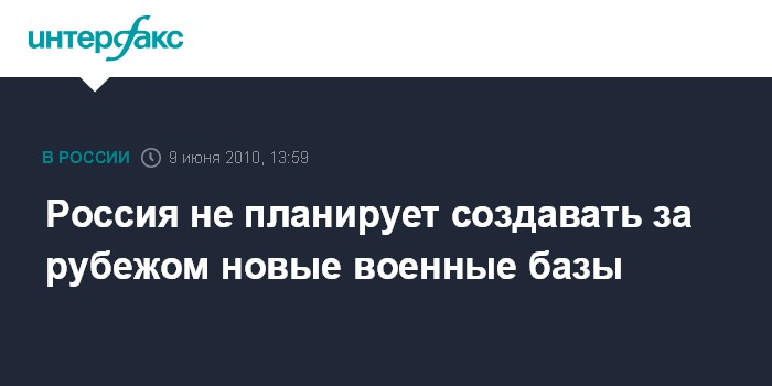 Москва. 9 июня. INTERFAX.RU – Министр обороны РФ Анатолий Сердюков заявил, что Россия не планирует расширять свое военное присутствие за рубежом путем создания там новых военных баз, сообщил журналистам председатель комитета Совета Федерации по обороне и безопасности Виктор Озеров.