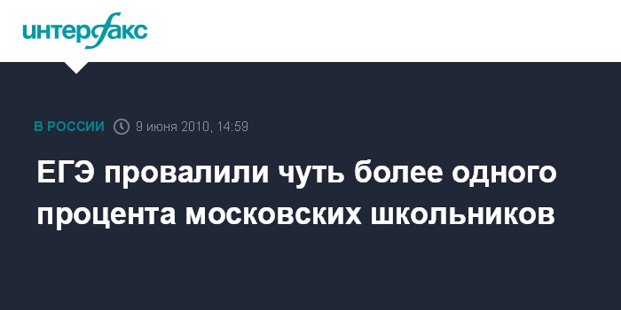 Москва. 9 июня. INTERFAX.RU - Столичные школьники узнают результаты сдачи ЕГЭ по русскому языку, который проводился 31 мая, в среду. Как сообщил "Интерфаксу" руководитель пресс-службы департамента образования столицы Александр Гаврилов, в 2010 году ЕГЭ по русскому языку сдавали 49 тыс. 40 одиннадцатиклассников и выпускников профессиональных лицеев. При этом он уточнил, что в этом году ЕГЭ по русскому языку провалили 1,1% от общего числа сдававших, тогда как в 2009 г. не справились с экзаменом 2,2%.