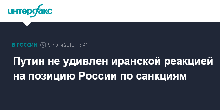 Москва. 9 июня. INTERFAX.RU - Премьер-министр РФ Владимир Путин не видит ничего необычного в критике Ираном позиции России в поддержку новой санкционной резолюции СБ ООН. "Иранское руководство защищает свою позицию. Я здесь не вижу ничего необычного. Думаю, что это вполне адекватная реакция", - заявил Путин в интервью агентству Франс пресс и телеканалу "Франс 2" накануне визита во Францию. В то же время премьер РФ подчеркнул, что он очень рассчитывает на то, что "в ходе этой дискуссии, в том числе публичной полемики, все-таки удастся выйти на такие формы взаимодействия с иранским руководством, чтобы и руководство страны, и, самое главное, граждане Ирана не чувствовали себя ущемленными с точки зрения осуществления своих прав на работу в высокотехнологичных областях, включая атомную, но в то же время, чтобы международное сообщество, соседи Ирана не проявляли обеспокоенности по поводу сути этой программы".