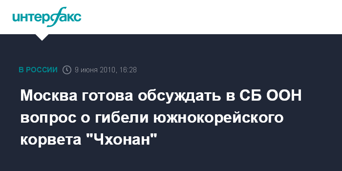 Москва готова обсуждать в СБ ООН вопрос о гибели южнокорейского корвета "Чхонан"