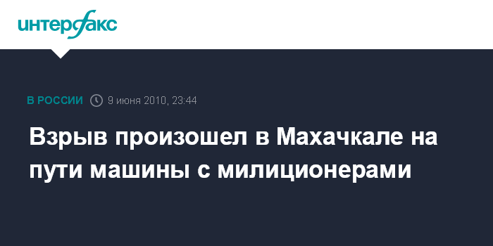 Махачкала. 9 июня. ИНТЕРФАКС-ЮГ - Взрывное устройство сработало в среду около 23:00 мск у входа на городской пляж Махачкалы на пути следования автомобиля с милицейским нарядом, сообщили агентству в пресс-службе МВД Дагестана.