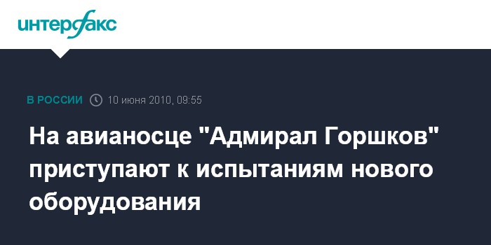 Нью-Йорк (ООН). 9 июня. INTERFAX.RU - На авианосец "Адмирал Горшков" ("Викрамадитье"), достраиваемый для ВМС Индии на судостроительном предприятии "Севмаш", доставлен истребитель МиГ-29К, с помощью которого в июне будет проверяться новое палубное оборудование корабля.