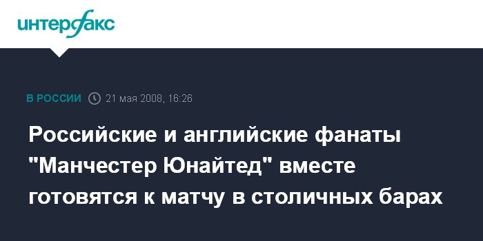 Москва. 21 мая. INTERFAX.RU - Российские и английские болельщики команды "Манчестер Юнайтед" заранее договорились о встрече и в среду вместе гуляют по столице, сообщает корреспондент "Интерфакса".