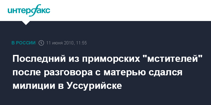 Последний из приморских "мстителей" после разговора с матерью сдался милиции в Уссурийске
