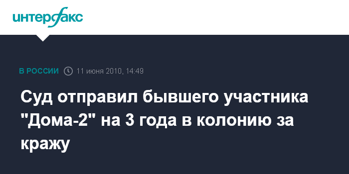 Москва. 11 июня. INTERFAX.RU - Бабушкинский суд Москвы приговорил к трем годам колонии строгого режима экс-участника телепередачи "Дом-2" Алексея Агеева, признав его виновным в краже одного миллиона рублей.