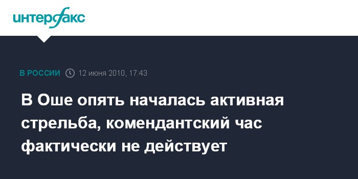 Москва. 12 июня. INTERFAX.RU – В Ош идет интенсивная перестрелка, передает с места событий корреспондент "Интерфакса". В городе горят разграбленные магазины и кафе, а также жилые дома.