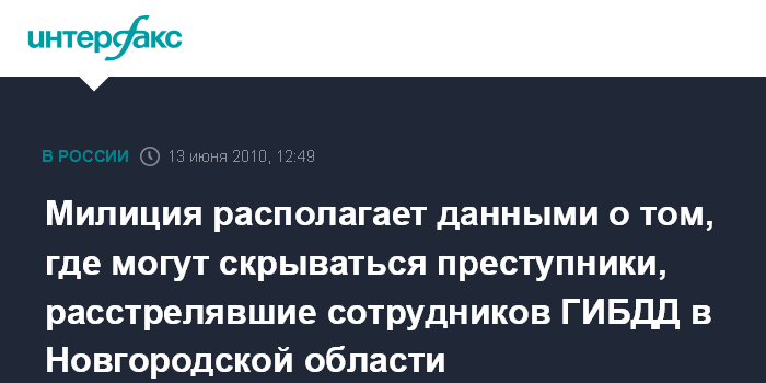Москва. 13 июня. INTERFAX.RU – В Новгородской области продолжаются поиски преступников, ограбивших накануне группу туристов из Москвы и расстрелявших двоих сотрудников ГИБДД при попытке задержания.