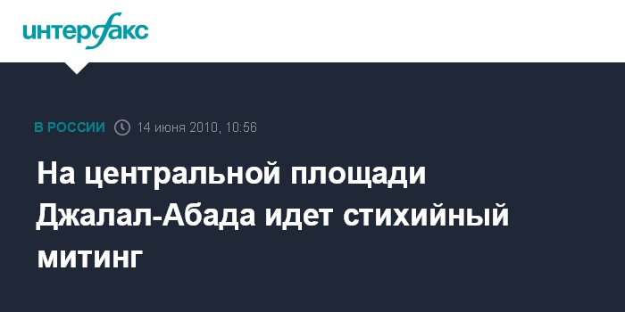 Бишкек. 14 июня. INTERFAX.RU - Около двух тысяч человек собрались на центральной площади Джалал-Абада и проводят стихийный митинг, на котором звучат противоречивые призывы. Очевидцы сообщают, что собравшиеся преимущественно киргизской национальности, часть из которых призывает собравшихся двигаться к местам компактного проживания узбеков, другая часть призывает сохранять спокойствие и не допускать кровопролития.