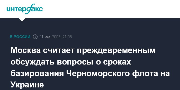 Москва. 21 мая. ИНТЕРФАКС - Москва считает преждевременным обсуждение вопроса о сроках пребывания Черноморского флота РФ на территории Украины.