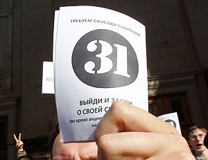 Организаторами митинга на Триумфальной площади в защиту 31-й статьи Конституции выступают оппозиционер Эдуард Лимонов, Л.Алексеева и представитель оппозиционного "Левого фронта" Константин Косякин. Второй год подряд им не удается согласовать акцию в защиту 31-ой статьи Конституции с мэрией Москвы. Вместо гражданских активистов на Триумфальную площадь приходят представители лояльных властям молодежных движений, у которых не возникает проблем с согласованием мероприятия.