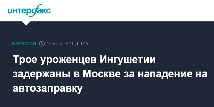 Трое уроженцев Ингушетии задержаны в Москве за нападение на автозаправку