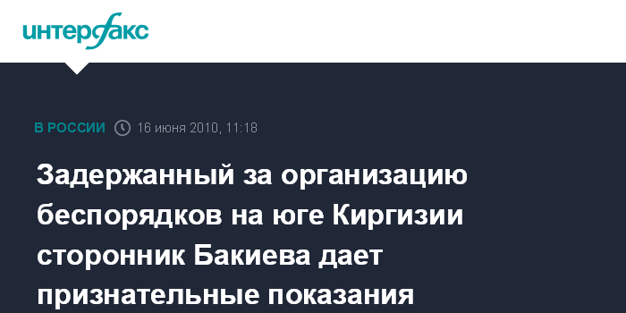 Задержанный за организацию беспорядков на юге Киргизии сторонник Бакиева дает признательные показания