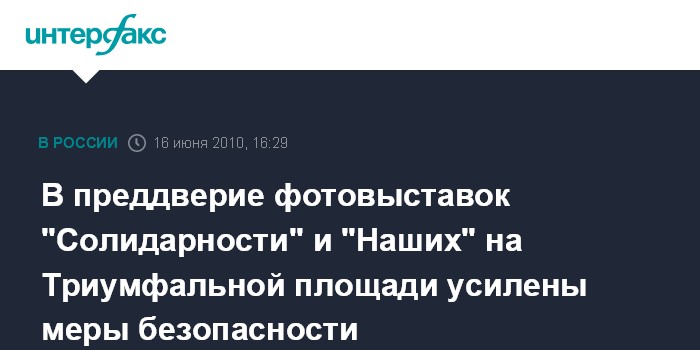 Москва. 16 июня. INTERFAX.RU - Сотрудники милиции во второй половине дня в среду начали прибывать на Триумфальную площадь в центре Москвы, где вечером запланирована фотовыставка оппозиционного движения "Солидарность". Представители оппозиции планируют с помощью фотографий рассказать о разгоне акции в защиту 31-й статьи Конституции России 31 мая.