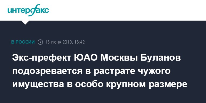 Экс-префект ЮАО Москвы Буланов подозревается в растрате чужого имущества в особо крупном размере