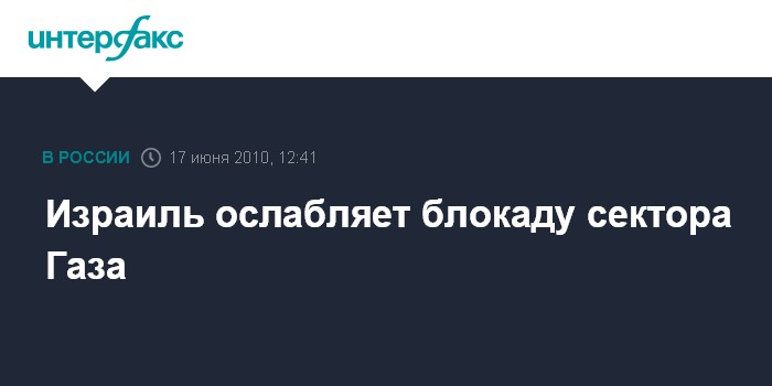 Москва. 17 июня. INTERFAX.RU - Кабинет безопасности израильского правительства принял решение ослабить блокаду сектора Газа и разрешить поставку туда товаров народного потребления и материалов гражданского назначения, говорится в коммюнике, распространенном в четверг канцелярией премьер-министра Израиля. Решение принято спустя две недели после штурма израильским морским спецназом судов "Флотилии мира", которые самостоятельно пытались доставить в сектор Газа груз гуманитарной помощи.