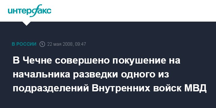 Москва. 22 мая. INTERFAX.RU - В Грозном ранен военнослужащий Внутренних войск.