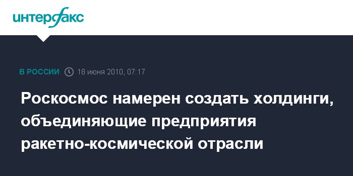 Ранее в СМИ появилась информация, что в 2012 году предприятия и научные организации российской космической отрасли могут быть объединены в шесть холдингов.