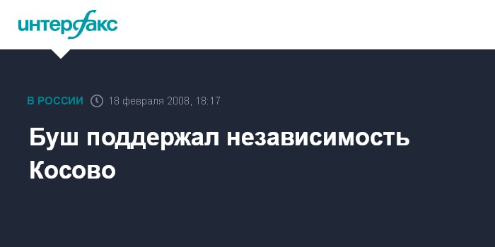 "Как я сказал накануне, план М.Ахтисаари - это модель, которой следует придерживаться. Теперь жители Косово независимы. Я и мое правительство поддерживаем это", - сообщил Дж.Буш, который сейчас находится в танзанийском городе Аруше, в беседе с корреспондентом американского телеканала Эн-би-си.