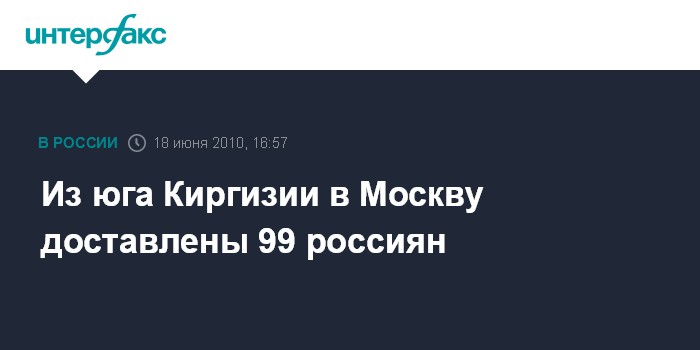 Москва. 18 июня. INTERFAX.RU – Около ста россиян эвакуированы с юга Киргизии, охваченного беспорядками.